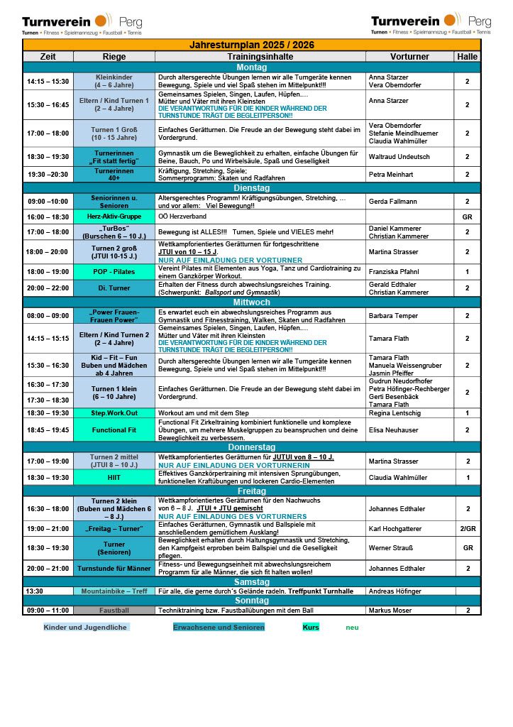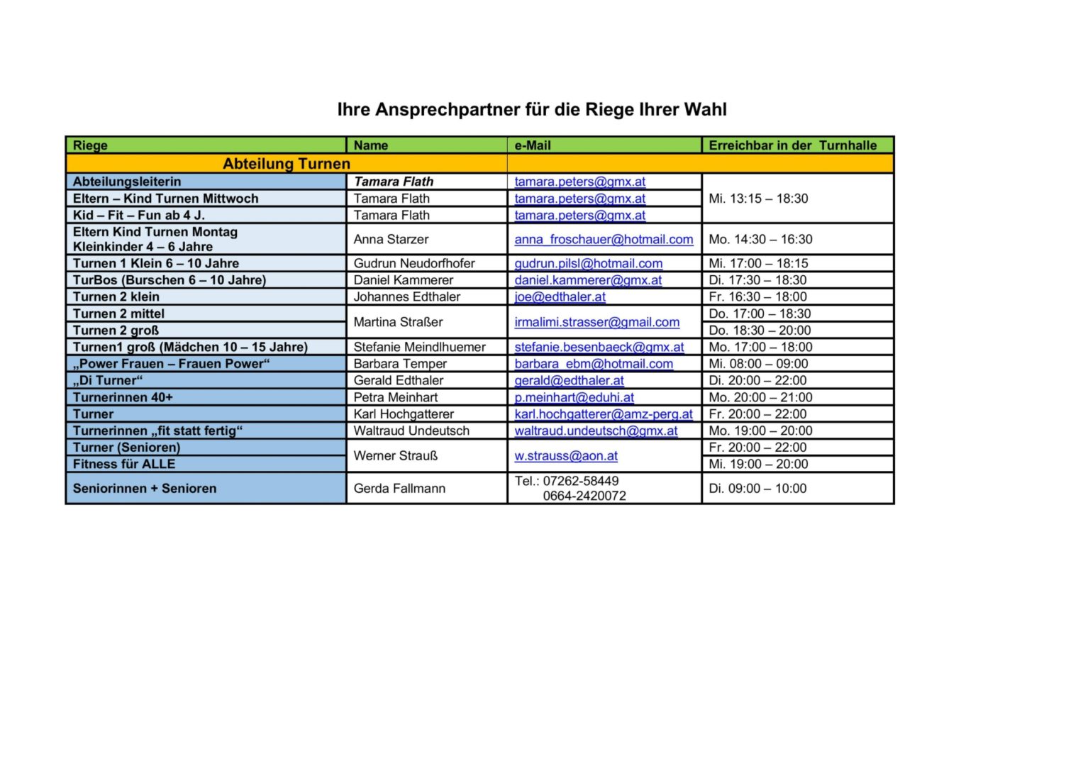 Vorturnerin: Anna Starzer (0664 6204033), Vera Oberndorfer